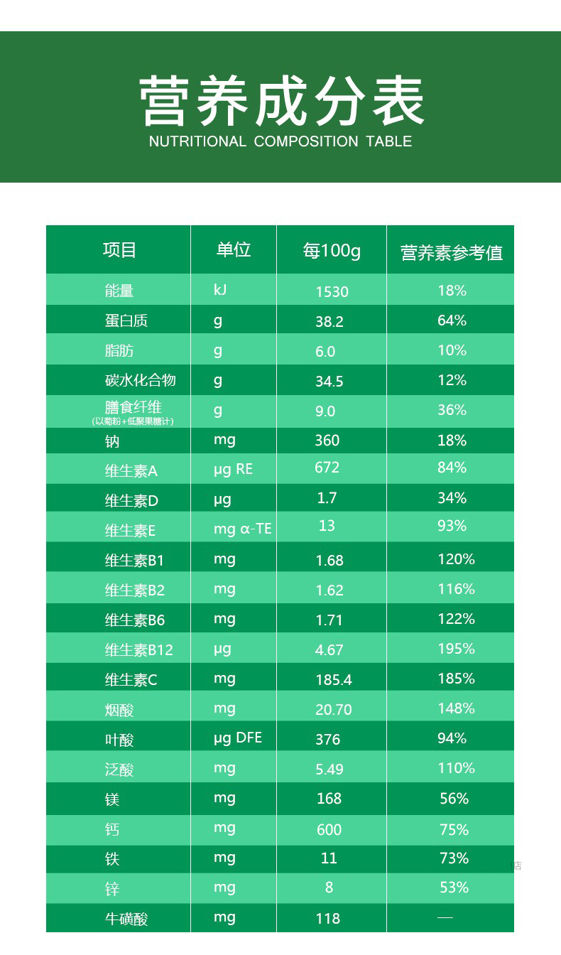 營養(yǎng)成分表: