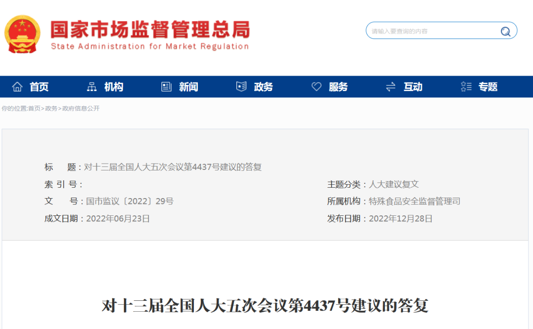 (特殊食品安全監(jiān)督管理司   2022-12-28)