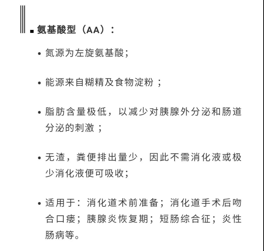 下面按腸內(nèi)營養(yǎng)制劑的蛋白質(zhì)類型,分類介紹腸內(nèi)營養(yǎng)制劑的具體特點: