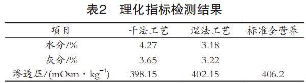2種工藝制備的樣品水分、灰分、滲透壓檢測結(jié) 果見表2。