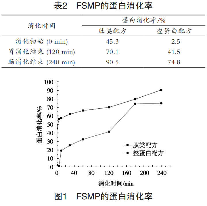 研究通過(guò)體外模擬蛋白消化的方法,測(cè)定添加水解乳清蛋白的FSMP配方和添加整蛋白(濃縮乳清蛋白+酪蛋白)的配方體外消化的區(qū)別。